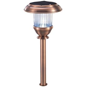Quality outdoor lighting powered by the sun is the environmental friendly, cost efficient way to light up walkways and gardens. These lights are crafted of durable stainless steel with a beautiful copper finish and glass lens.