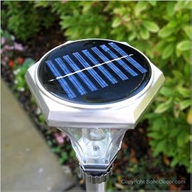 Go solar while adding elegance to your home's landscape with this handsome Grand Barcelona Stainless Steel Solar Light. Constructed of durable rust-resistant stainless steel and equipped with the largest currently available solar panel. Each 5 inch crystal silicon solar panel converts enough free energy from the sun to stay lit for 8 to 12 hours. Within each lens FOUR patented ultra white direct output LED bulbs face 4 different directions to provide ample light to its surroundings. Automatic on at dusk and off at dawn means hands-free operation. Each light's lens, cap, pole, and stake are quick and easy to assemble. An excellent choice for adding beauty and ambience to the energy efficient garden.