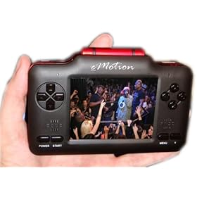 eMotion from Media Street is more than a digital media player for music, pictures, and video. It can also handle pocket games. It excites and relaxes your emotions in ways no other player has yet approached. Foldable 2-screen unit fits into your pocket and is ready to make your emotions live. Play video - support AVI format film play achieves QVGA@25f/s fluent MPEG4 video (320 x 240) and provides video bookmark function View photos - JPEG, BMP, GIF Game simulator - supports FC/GB/GBC/MD 8/16 bit simulator expansion developed by third parties; compatible with NES/GB/GBC/SEGA game ROM Read books - supports TXT format Read books while listening to MP3 music E-book with reading capacity - will read out loud any TXT file in Chinese or English User-friendly menu with relevant animated instructions USB 2.0 port Compatible OS - Windows 98/98SE/ME/2000/XP/Linux 2.4+/Mac OS 9